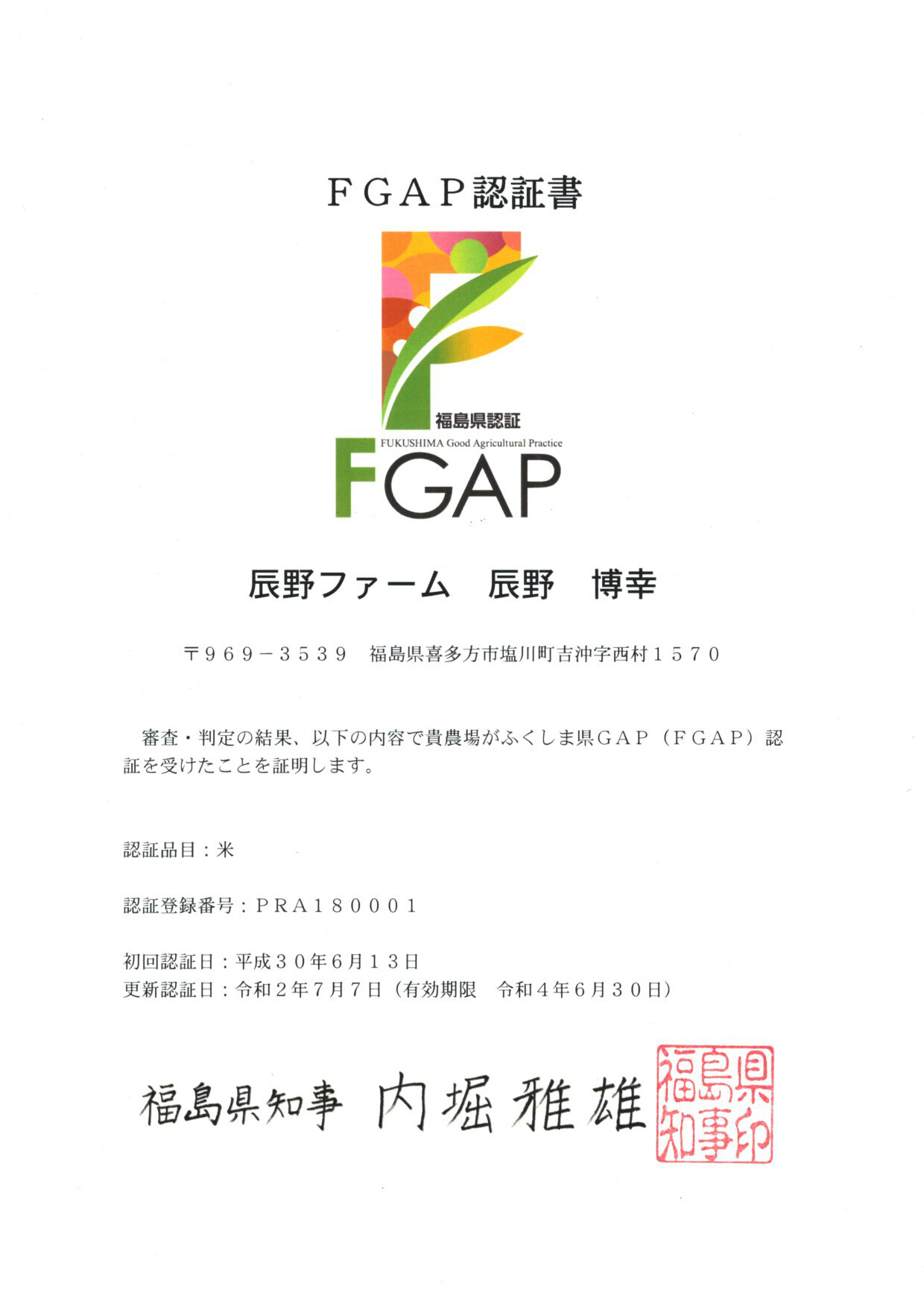 2018年に県GAPのふくしま県GAP(FGAP)の認証を取得しましたが、あくまでJGAPのルールを県GAPに置き換えたローカルバージョンに過ぎず、認証基準の規則はJGAPに類似していると表向きは思うのだが。